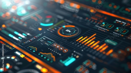 © Salman, Obraz premium close-up of a digital financial planning tool with sliders and dials for adjusting budget forecasts