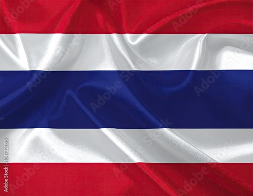 © susu, Naklejka premium Close-up of a draped flag, featuring red, white, and blue horizontal stripes