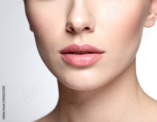 Obraz premium Close-up of a fair-skinned person's face, focusing on lips and nose