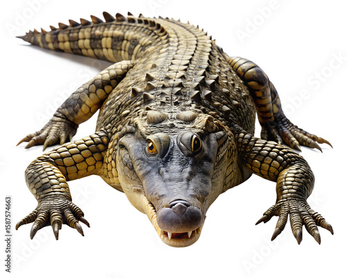 © Nipa, Obraz premium Close up of a fearsome crocodile with sharp teeth and scales isolated on transparent background