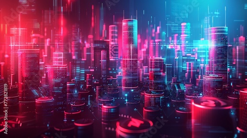 © Wayu, Obraz premium Close-up of a financial report on blockchain technology impact in banking, with charts and graphs