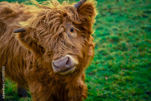 © Andreea_Prodan, Fototapeta premium Close-up of a fluffy brown cow with long hair
