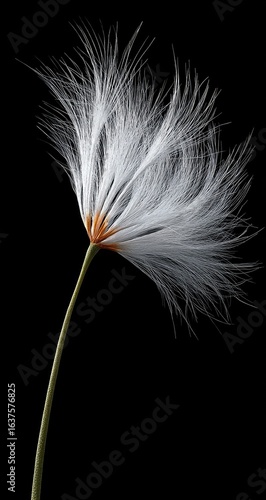 Obraz premium Close-up of a fluffy, white seed head against a black background