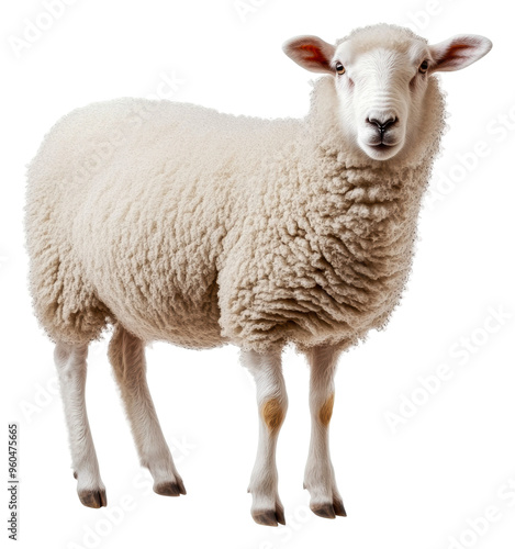 Obraz premium Close-up of a fluffy white sheep in natural pose, cut out - stock png.