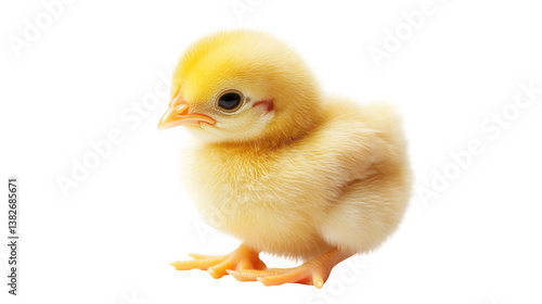 © Usman, Fototapeta premium Close up of a fluffy yellow chick standing on a black background looking to the left side view