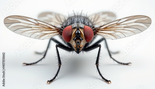 © ambacim, Fototapeta premium Close-up of a fly with striking red eyes.