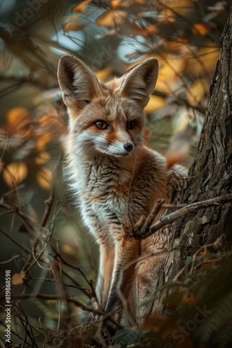 Obraz premium Close up of a fox in a tree, perfect for nature themes