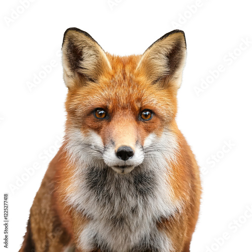 Fototapeta premium Close-up of a fox with striking orange fur on a white isolated background