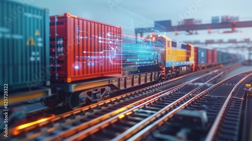 Fototapeta premium Close up of a freight train loaded with containers