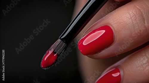 Obraz premium Close-up of a fresh manicure process, shiny red nail polish being applied...