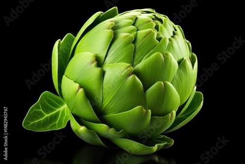 © Oratai, Obraz premium Close-up of a fresh organic green artichoke with a natural glossy finish on its leaves, showing rich green tones