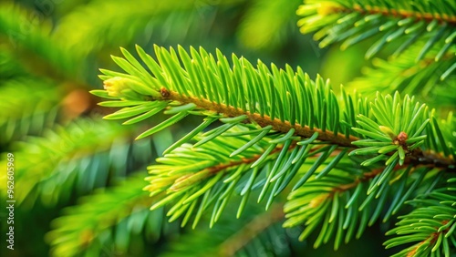 Fototapeta premium Close-up of a fresh spruce branch with vibrant green needles, spruce, branch,...