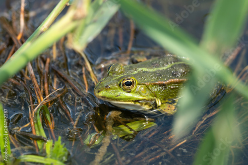 © sandradombrovsky, Fototapeta premium Close-up of a frog sitting in the water