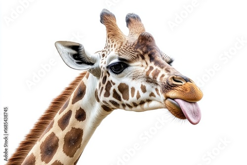 © Rangga, Fototapeta premium Close-up of a giraffe's head and neck, tongue out (2)