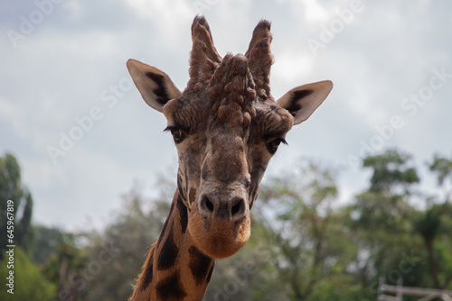 © Louis, Naklejka premium Close-up of a Giraffe's head infront of the Sky
