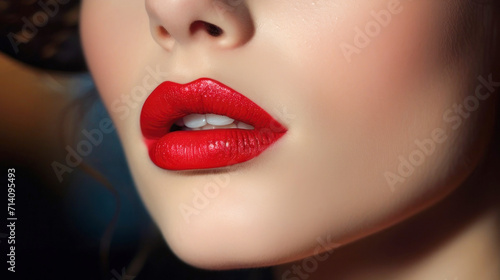 © Tereza, Fototapeta premium close-up of a girl's face with red lipstick