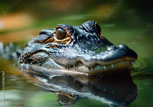 © ANUAR, Fototapeta premium Close-up of a Gliding Alligator in Calm Water with Bubbles, Showcasing Its Textured Skin and Piercing Eyes in a Natural Habitat Environment