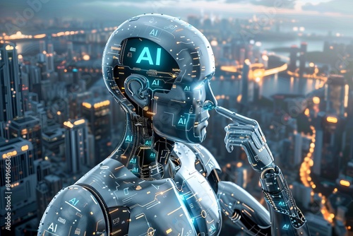 © Leo Rohmann, Fototapeta premium Close up of a glowing AI processor on a colorful circuit board, representing artificial intelligence and technological advancements