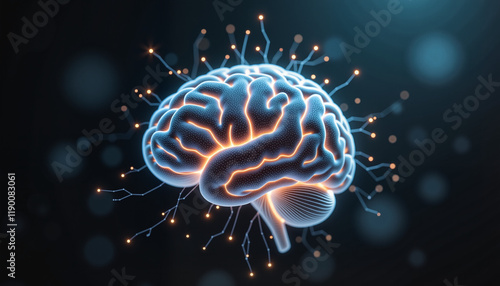 Fototapeta premium Close-up of a glowing digital brain with neural connections and soft light in a dark void, hyper-realistic style