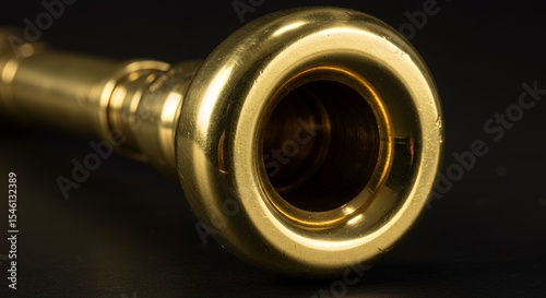 © kenzo, Naklejka premium Close-up of a Golden Brass Musical Instrument Mouthpiece