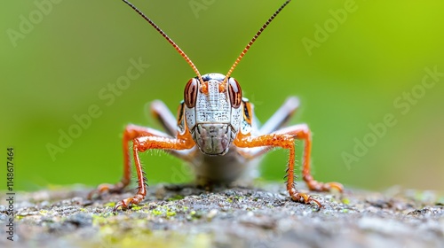 © kinara art design, Fototapeta premium Close-up of a grasshopper on a mossy surface.