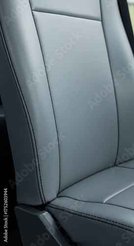 Obraz premium Close up of a gray car seat with black stitching detailing.