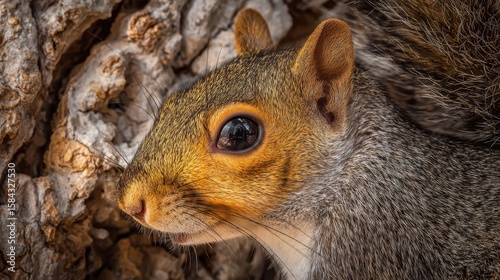 © Ariestia, Obraz premium Close-up of a gray squirrel's face and fur.