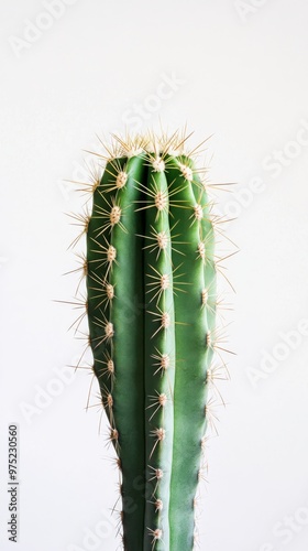 © cac_tus, Naklejka premium Close-up of a green cactus on a white background. Minimalist nature and botanical concept