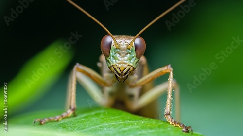Fototapeta premium Close Up of a Green Mantis on Leaf in a Natural Outdoor Setting : Generative AI