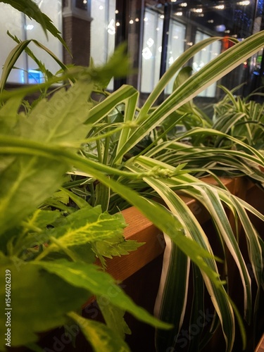 © Kateryna, Obraz premium Close up of a green plants in cafe