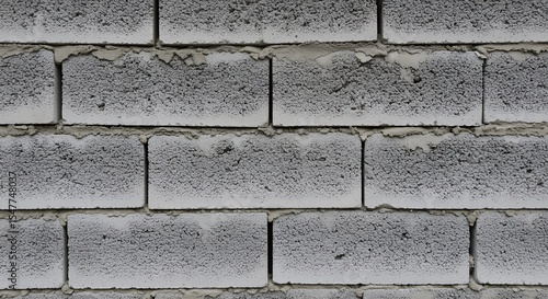 Obraz premium Close-up of a Grey Concrete Block Wall with Uneven Mortar