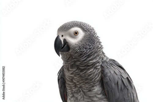 © AuraArt, Fototapeta premium Close-up of a grey parrot against a white background.