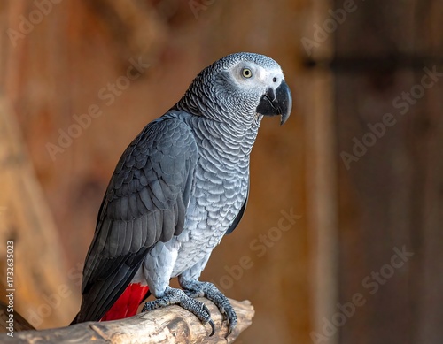 © wiret, Naklejka premium Close-up of a grey parrot perched on a branch