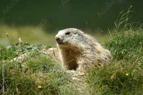 © Marco, Fototapeta premium Close up of a groundhog in a mountain field