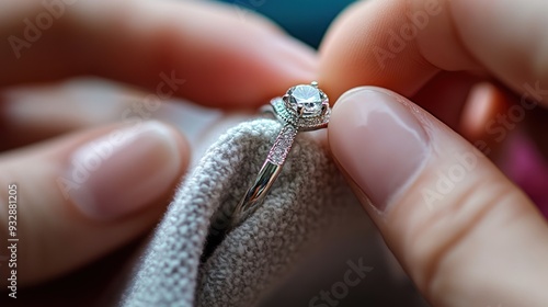 © creativeideh, Obraz premium Close-up of a hand holding a diamond ring