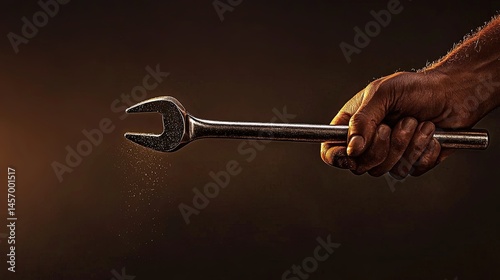 Fototapeta premium Close-up of a hand holding a wrench with particles in motion.
