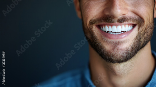 © VALUEINVESTOR, Obraz premium Close up of a handsome man smiling with white teeth, short beard, generative AI