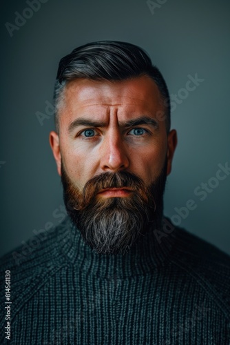 © Hryhor Denys, Obraz premium Close up of a handsome man with a beard, wearing a sweater
