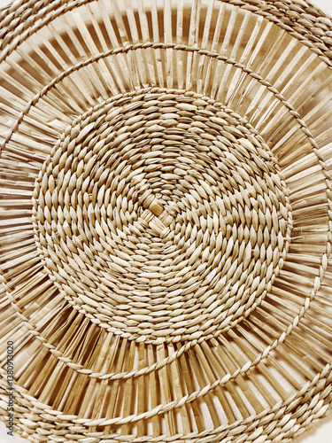 Fototapeta premium Close-up of a handwoven rattan or wicker texture. Natural material with warm,...