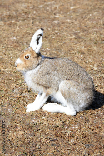 © yanakoroleva27, Fototapeta premium Close up of a hare sitting on the ground