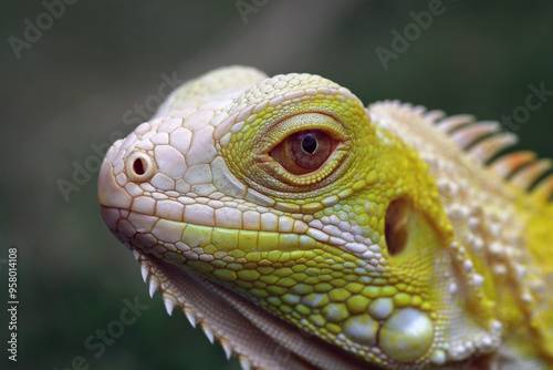 © Agus Gatam, Fototapeta premium Close-up of a head albino iguana