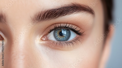 © xxom.o, Obraz premium Close-Up of a Healthy Blue Eye with Clear Iris and Defined Eyelashes