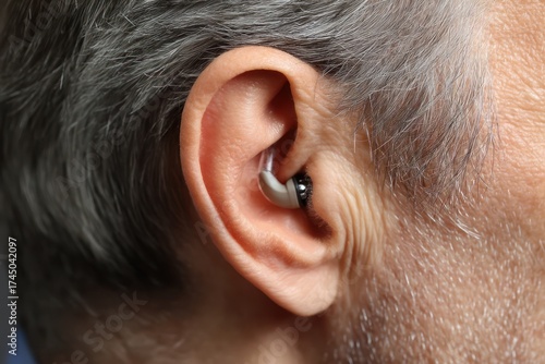 Obraz premium Close-Up of a Hearing Aid in a Man's Ear