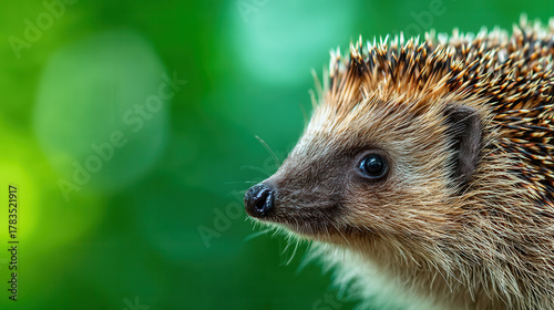 Fototapeta premium Close-up of a hedgehog in a lush green environment enjoying a quiet moment...