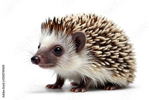 Fototapeta premium Close-up of a hedgehog, isolated, against pure white backdrop, closeup, thorn, quill