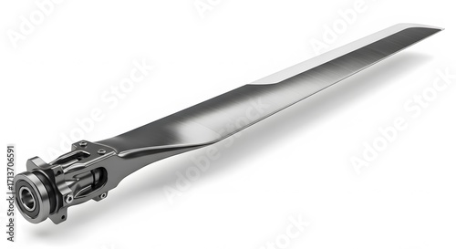 © agil, Obraz premium Close-up of a Helicopter Rotor Blade on White Background.