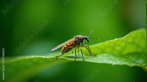 Fototapeta premium Close-up of a Hoverfly on a Green Leaf