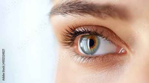 © Infinity, Obraz premium Close Up of a Human Eye - Green Iris and Long Eyelashes