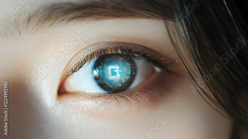 Fototapeta premium Close-up of a human eye with a futuristic digital interface, representing...