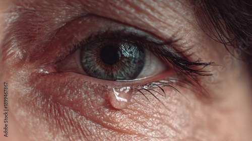 © GoDress, Obraz premium Close-up of a human eye with a single tear rolling down the cheek.